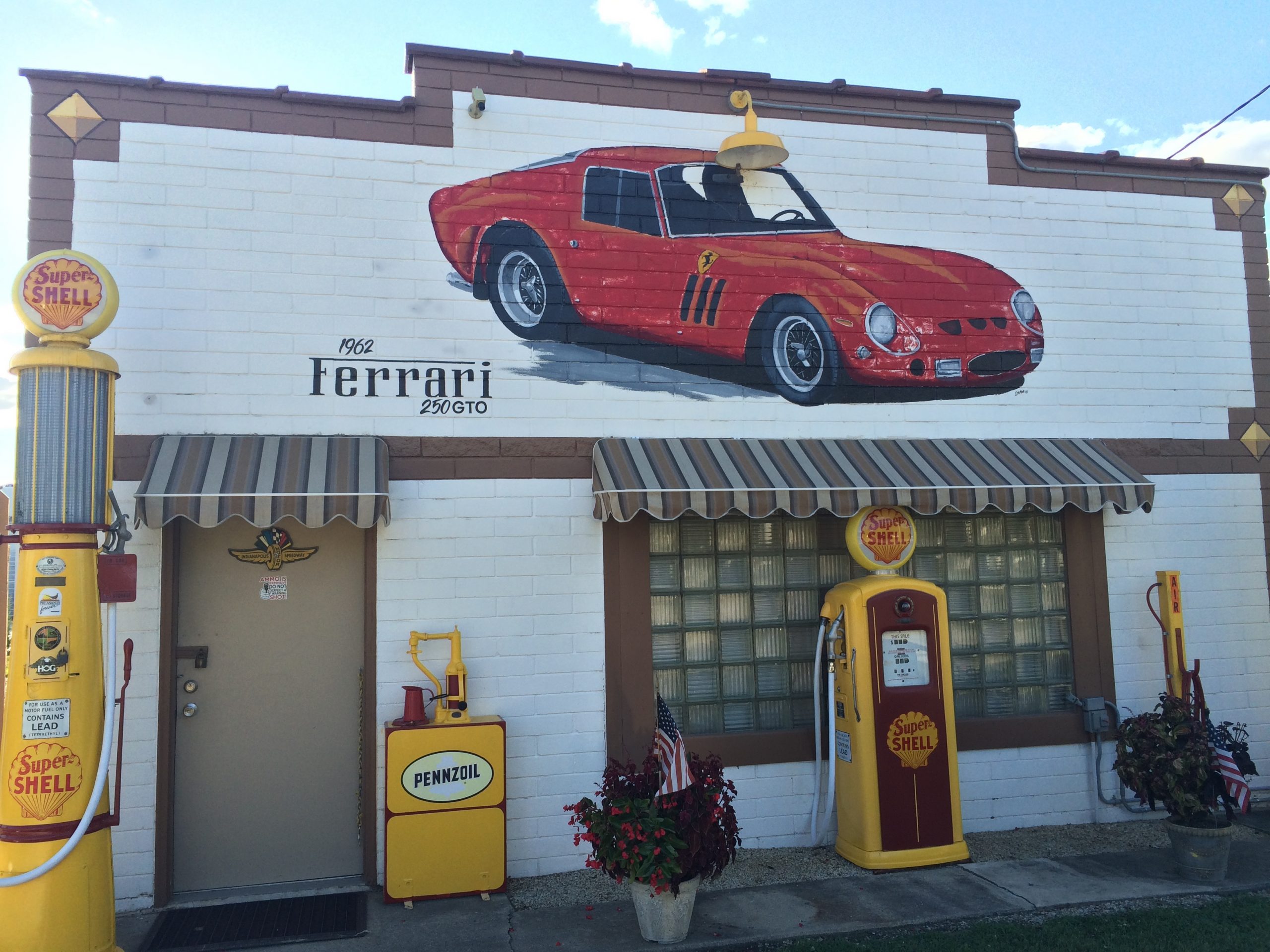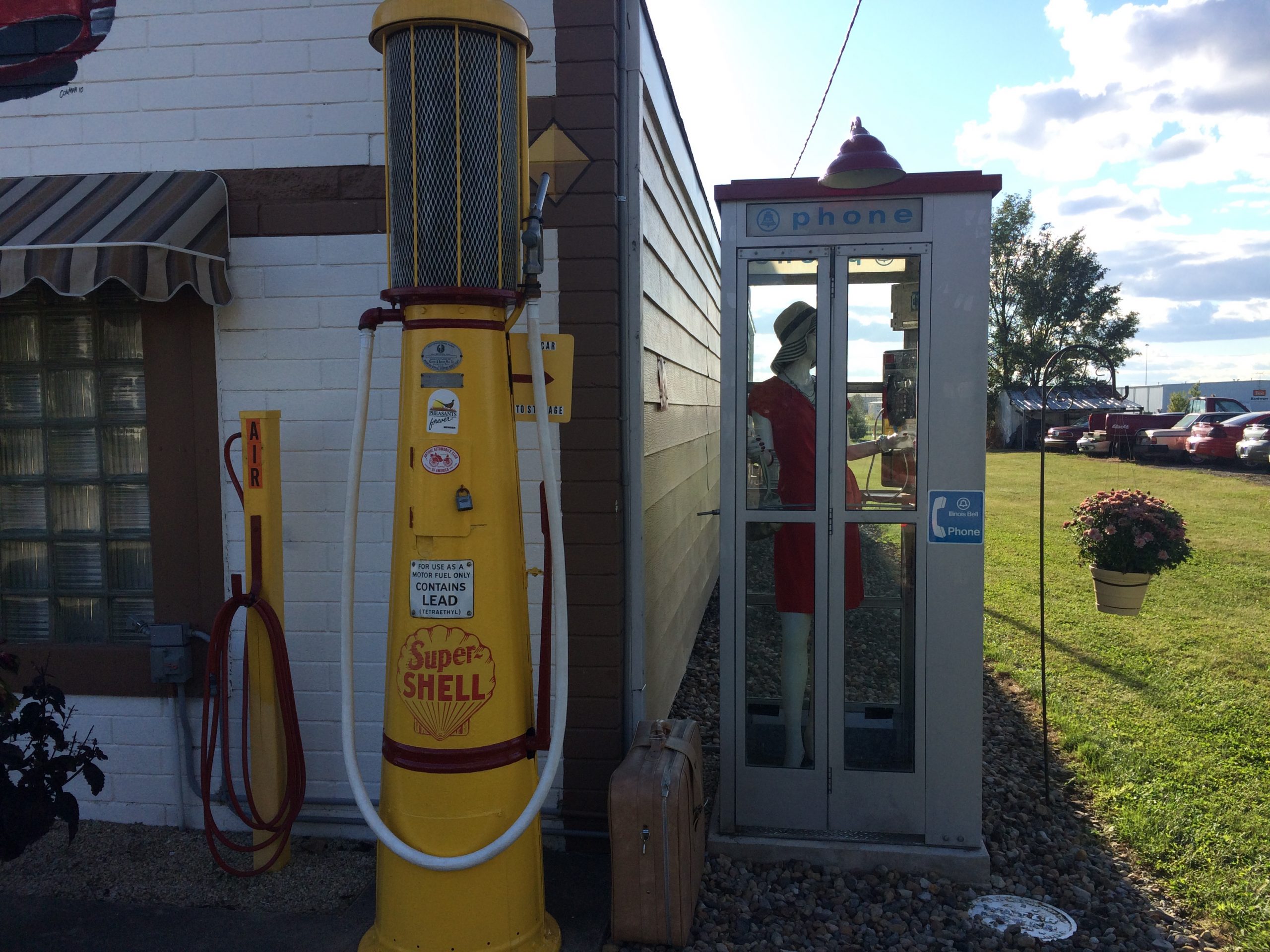 Just down the street from the Texaco station in Dwight stands this structure. As you can see, this spot is decked out in vintage gas pumps and other memorabilia.